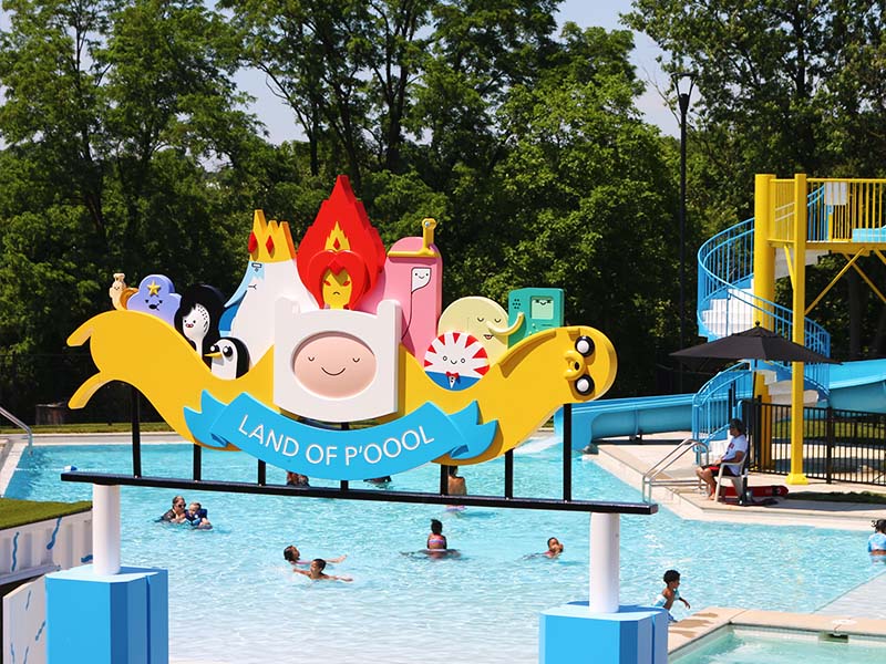 The zero-entry pool is the best way to beat the summer heat at the Cartoon Network Hotel! Relax in our water lounge chairs, take a trip down the slide, or dip your toes in our outdoor hot tub. Cool off next to the pool with Blossom, Bubbles and Buttercup at The Powerpuff Girls “Splashville” splash pad!